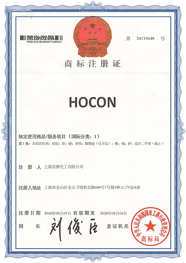 Hocon International Co., Ltd. was established in 2015, is a manufacturer specializing in silicone products. Its product varieties include: organosilanes, silicone resin, silicone oil, modified silicone oil and their deep-processing products, Ürünlerin uygulama alanları arasında günlük kimyasal, tıp, yarı iletken, kaplama endüstrisi, yapı malzemeleri endüstrisi, tekstil yardımcıları, tarımsal bitki koruması vb. yer alır.